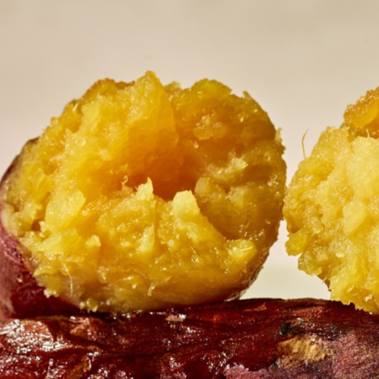 産地からこだわった宮崎県産、茨城県産の紅はるかを信楽焼の焼き芋専用壺でじっくり2時間かけて焼き上げています。やきいももいきやの独自の焼き方でアルミホイルを使用。焼いている2時間の間に何度も焼き加減をチェック、そうして焼き上げる紅はるかは、蜜いっぱいのしっとり食感。お芋の端っこまで蜜がたっぷりのやきいもになります。そのままの美味しさを冷凍してお届けします。電子レンジで凍ったまま2分でほぼ全解凍しますのでそこからホカホカに温めても少しトースターで香ばしく温めても、冷たいままスイーツのように召し上がっていただくのも、どの方法もおすすめです。